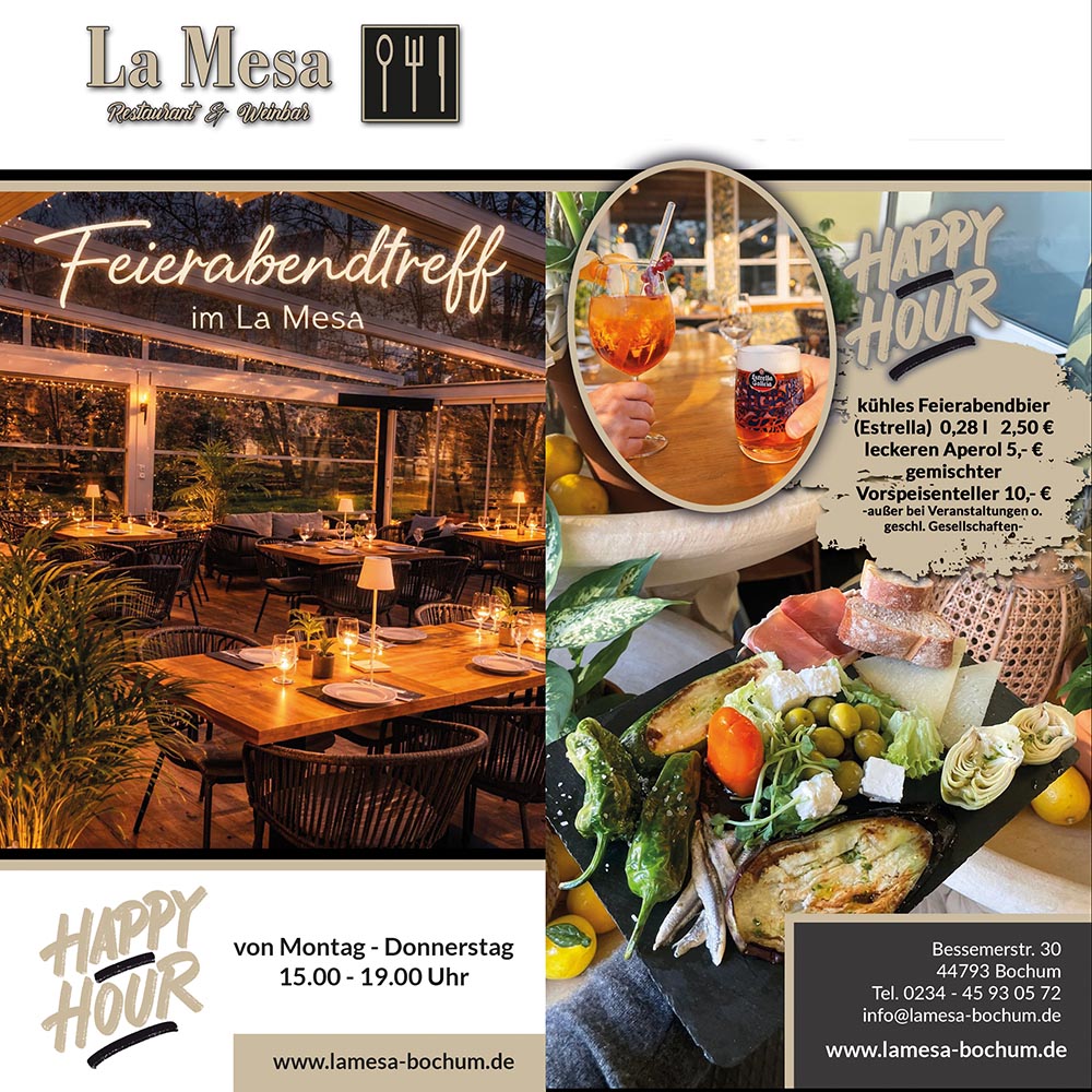 La Mesa bietet Ihnen spanische Esskultur und herzliche Gastfreundschaft in entspannter Atmosphäre. Verbringen Sie einen gemütlichen Abend mit Freunden oder einen romantischen mit Ihrer/Ihrem Liebsten in einem einzigartigen Ambiente.